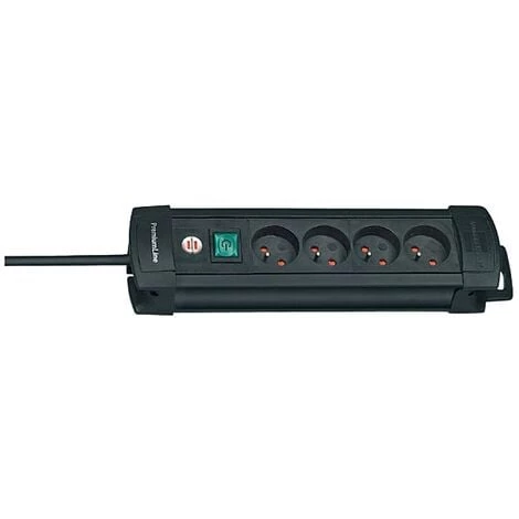 Bloc prise premium plus 4 prises noir avec interrupteur et voyant, Noir