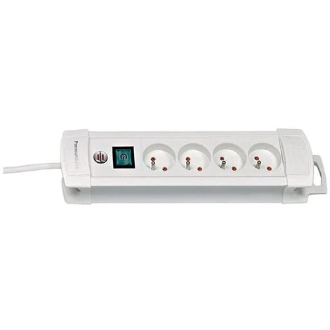 Bloc prise premium plus 4 prises blanc avec interrupteur et voyant, Blanc
