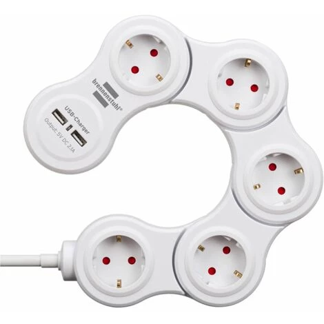 La bande de prise de courant VARIO avec fonction de chargement USB de Brennenstuhl de la couleur blanche avec 2 prises de charge USB et un câble de 1,4 m de long impressionne avec sa qualitĂ© et sa sĂ©curitĂ© dans tous les domaines. Les prises de la bande de connecteur peuvent ĂŞtre pivotĂ©es individuellement, parfaites pour une utilisation dans un coin ou un objet. La bande d’alimentation mobile a non seulement une protection de contact accrue, mais convaincit Ă©galement les propriĂ©tĂ©s suivantes: