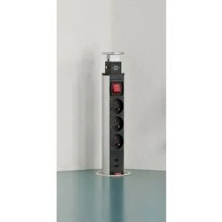 Innovative desk outlet for flexible workspace design.