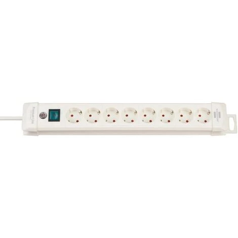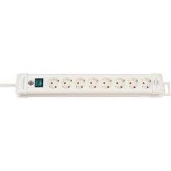 8-way extension socket with 3.00-m cable H05VV-F 3G1,5 16A, 2-pole switch, colour white.