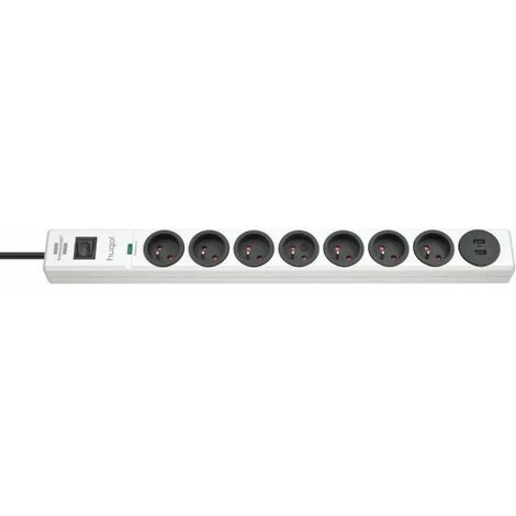 Prolongateur multiprise – 7 prises 2 P+T et 2 prises USB – Avec parasurtenseur : pour protĂ©ger les appareils connectĂ©s contre les surtensions jusqu’a 19500 A maximum – Interrupteur – Câble : 2 m – Voyant lumineux indiquant la protection active du parasurtenseur.