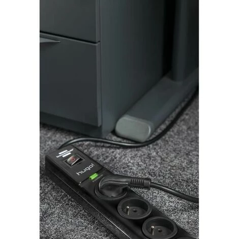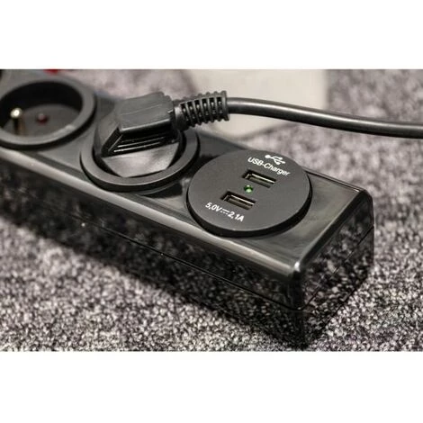 Prolongateur multiprise – 7 prises 2 P+T et 2 prises USB – Avec parasurtenseur : pour protĂ©ger les appareils connectĂ©s contre les surtensions jusqu’a 19500 A maximum – Interrupteur – Câble : 2 m – Voyant lumineux indiquant la protection active du parasurtenseur.