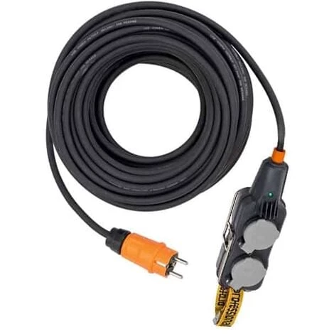 Rallonge de 15 mètres Brennenstuhl, Ă©quipĂ©e d’un bloc de 4 prises de courant pour une grande mobilitĂ© sur les chantier, les Ă©chafaudages, les toits … Les prises son protĂ©gĂ©s contre la poussière et les projections d’eau. SĂ©curitĂ© d’utilisation avec l’IP 54.