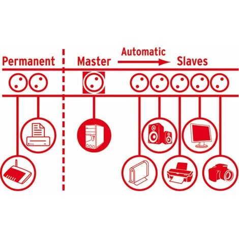 • Confort élevé travers 1 maître (3500 W) et 5 douilles esclaves (3500 W).