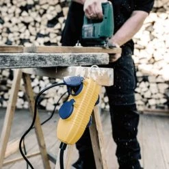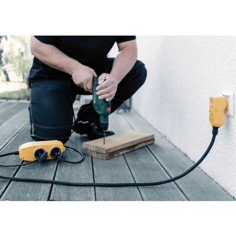 Le câble robuste avec fiche RCD et prise de sĂ©curitĂ© protĂ©gĂ©e contre les jets d’eau Ă 4 voies est facile Ă utiliser. Connectez-le simplement Ă la prise et branchez les appareils requis. Le câble offre une protection maximale lors de l’utilisation d’Ă©quipements Ă©lectriques. En cas de contact avec des fils ou des pièces conducteurs de courant, l’alimentation en courant est automatiquement interrompue pour protĂ©ger contre les blessures corporelles dangereuses et les chocs Ă©lectriques. Avec un indice de protection IP54, le câble est Ă©tanche Ă la poussière et parfait pour une utilisation en plein air.