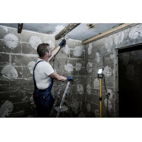 Le puissant projecteur LED Jaro est un projecteur de chantier LED extrêmement économe en énergie avec une puissance d’éclairage élevée, pour satisfaire aux exigences les plus élevées. Grâce à l’indice de protection IP65 (étanche à la poussière et protégé contre les projections d’eau), il convient parfaitement pour une utilisation extérieure ou dans des environnements humides par ex. sur les chantiers, dans l’industrie, en forêt ou pour les artisans et les travaux autour de la maison. Le projecteur de travail LED peut être orienté et verrouillé en continu à l’aide d’une seule main grâce à la fermeture à serrage rapide sur le châssis. Le boîtier en aluminium ainsi que le cadre tubulaire en acier sont extrêmement robustes, celui-ci étant en plus protégé par des coins de protection antidérapants en plastique. Le projecteur LED de chantier vous séduira également par sa construction extrêmement plate et sa compacité. Les LED CMS Everlight intégrées ont une durée de vie exceptionnelle et permettent une diffusion spéciale de la lumière, parfaite pour l’éclairage des grandes surfaces.
