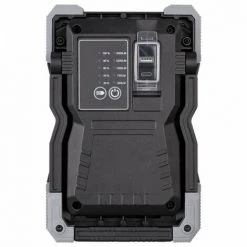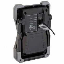 – Lampe de chantier LED avec batterie Li-lon 7,4V / 5Ah intĂ©grĂ©e avec fonction Powerbank, 1 interrupteur pour Ă©clairage et 1 interrupteur poussoir avec 5 tĂ©moins de charge (100% – 80% – 60% – 40% – 20%).