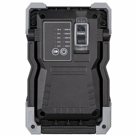 – Phare de travail Ă©quipĂ© de la fonction Powerbank (batterie externe/de secours) pour recharger les appareils comme les smartphones (prise-chargeur USB (1A) type A/C), 1m de câble de raccordement USB. â—‹ 5 modes d’Ă©clairage : 3000lm – 2250lm – 1500lm – 750lm – 300lm avec mĂ©moire du dernier statut