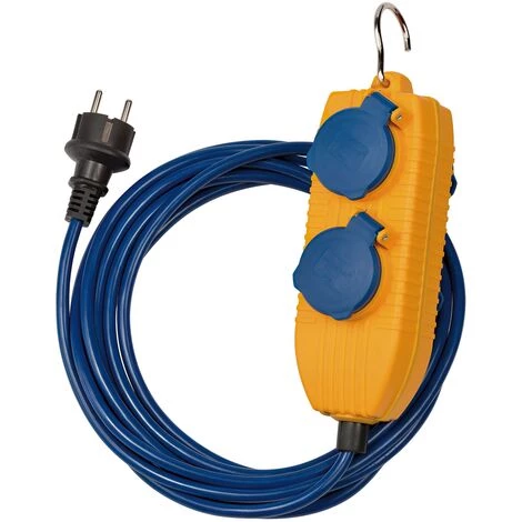Brennenstuhl Rallonge avec rĂ©partiteur 4 voies (câble d’alimentation bleu de 5 m pour une utilisation en extĂ©rieur Ă court terme IP54, avec crochet en mĂ©tal pliable)
